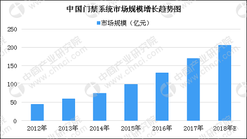根據中商產業研究院發布的《2018-2023年中國智能家居行業市場前景及投資機會研究報告》數據統計顯示,2017年中國門禁系統市場規模近170億元。據預測,2018年中國門禁系統市場規模或有望突破200億元。