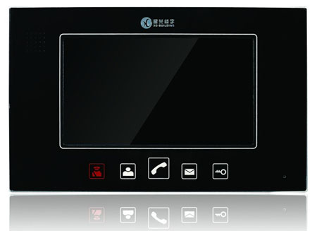 與傳統模擬系統分機相比,FM2003MBVC-16T觸摸屏分機獨創性地采用了數字7寸顯示屏,增加了全數字化的彩色圖像存儲方案,擁有強大的觸摸屏功能;黑色亞克力面板+銀色優質ABS材料外殼與纖薄機身和諧搭配盡顯高貴品質;該機量產版將會采用頗具科技特色的熱感電容觸摸按鍵,屏幕下方的熱感電容觸摸按鍵從右到左依次為開鎖、查看、通話、監視、報警,科技、時尚之余也符合時下火熱的觸控體驗。后面板整齊排列的四個掛槽能很好的將機器固定在墻上,報警接口、防區接口、電源接口也設置在醒目位置。