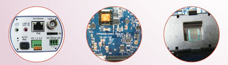NH-061內部主要由3塊板組成:主控板、圖像采集板和電源板;主控板實現(xiàn)視頻和音頻處理、網絡接口等功能模塊;圖像采集板塊實現(xiàn)圖像的光電轉換;電源單板可以看到高性能排阻、貼片電容提供電源保護,電源板為主控板和圖像采集板提供工作電源、以及相應的上下電控制。