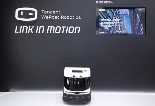 8月23日,在首屆中國國際智能產業博覽會上,騰訊推出智能配送機器人“騰訊微派”。
