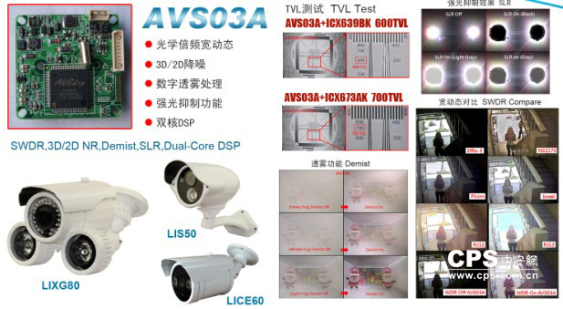 AVS03A是一個具有強大影像監控效能的CCTV數字圖像處理器,它能夠支持百萬/千萬像素的CCD/CMOS圖像傳感器,提供超高清晰的圖像還原度,強大的視訊處理如光學倍頻寬動態、3D/2D降噪、數字慢快門、強光抑制、人臉測光、透霧處理、人臉動態放大、智能影像調整等等最完善的高端視訊監控處理功能。
