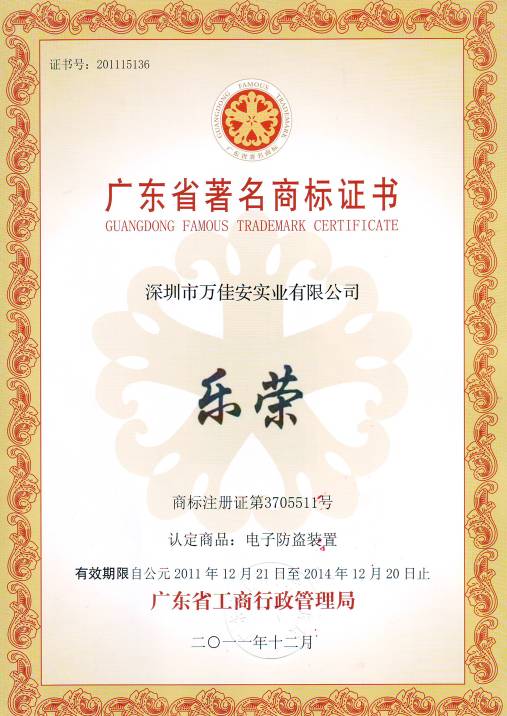 廣東省著名商標是國家建設(shè)國際知名品牌戰(zhàn)略的重要渠道,能夠有效保護著名商標所有人、使用人和消費者的合法權(quán)益,促進商品質(zhì)量、服務(wù)質(zhì)量和商標信譽的提高,通過對深圳市萬佳安實業(yè)有限公司的安防監(jiān)控品牌“RELONG樂榮”進行審查和現(xiàn)場考察,以及嚴格的相關(guān)部門及行業(yè)協(xié)會評審,經(jīng)過廣東省著名商標認定委員會討論、認定,“RELONG樂榮”品牌取得了專家的一致認可,榮獲“廣東省著名商標證書”。