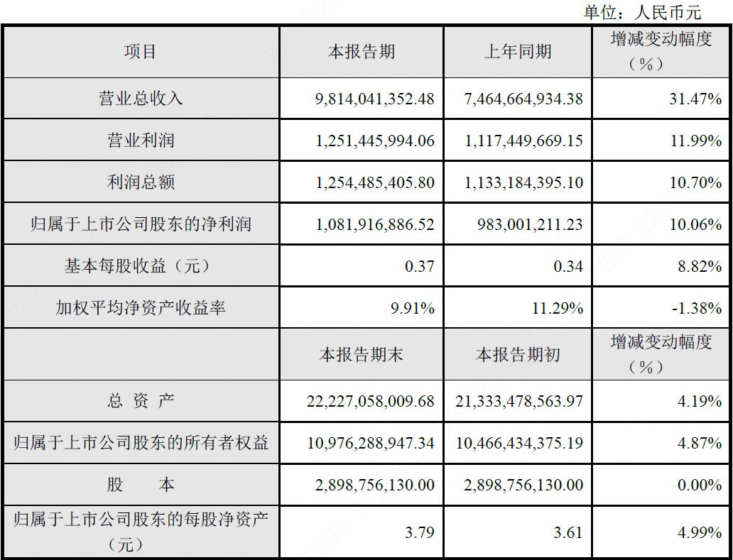 1、報告期內公司實現營業總收入9,814,041,352.48元,較上年同期增長31.47%,實現營業利潤1,251,445,994.06元,較上年同期增長11.99%,實現利潤總額1,254,485,405.80元,較上年同期增長10.70%,實現歸屬上市公司股東凈利潤1,081,916,886.52元,較上年同期增長10.06%。主要是報告期內公司基于技術創新、行業經驗、客戶布局的領先優勢,持續提升以視頻為核心的智慧物聯解決方案能力,把握市場和行業的發展趨勢,從而使公司業績持續增長。