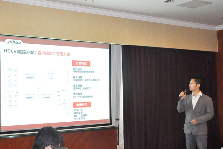 會(huì)上,大華公司技術(shù)人員詳細(xì)介紹了HDCVI技術(shù)并作了方案講解,并就技防專(zhuān)家關(guān)心的技術(shù)問(wèn)題作了細(xì)致解答。與會(huì)專(zhuān)家認(rèn)真審閱了有關(guān)材料,聽(tīng)取了HDCVI產(chǎn)品的技術(shù)介紹,觀看了產(chǎn)品演示。