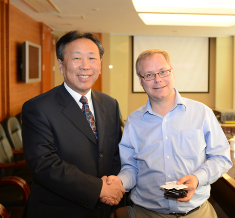 5月31日下午,上海安全防范報警協會理事長孫廷華在協會會議室熱情接待發明首臺網絡攝像機,安訊士聯合創始人martin gren一行。孫理事長介紹了近年來本市安防系統建設情況,并就網絡監控系統的未來發展與martin深入交換了意見。會晤結束后雙方合影留念。參加會晤的還有市局治安總隊內保處副處長、報警協會秘書長陶焱升,安訊士中國區總監蔣洪濤,安訊士中國區市場及渠道經理李自明等。