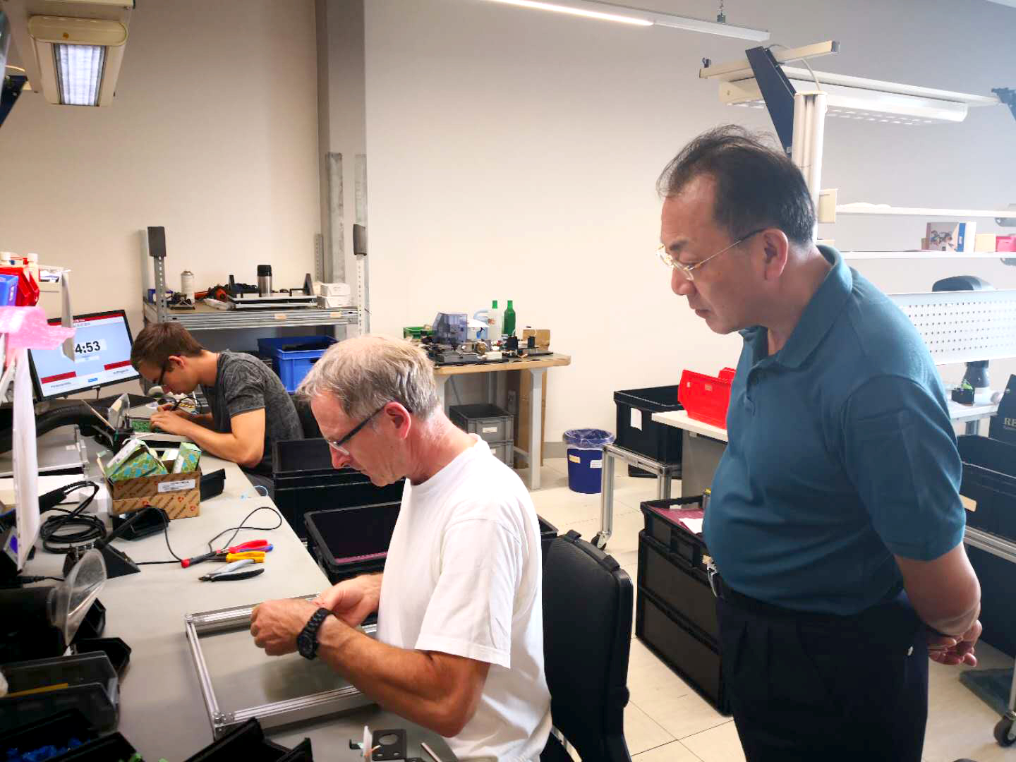 最后,特思公司的產品負責人特意帶領趙理事長一行人參觀了生產車間。車間分區,不同的區有不同的數控機床,在統一完成數控機床程序的編寫之后,相關程序會輸入相關的數控機床進行機械操作。有的機床有五面同時切割功能,有的機床有專門的數控機器人進行操作,在機械加工以后,工人都要對加工品進行尺寸與表面的測量,最大程度的保證產品的質量。在這里,筆者體會到了德國制造的精湛工藝和其具有持久耐用的產品特點。除此之外,無論是最新智能化SMD電路板貼片設備還是智能化電子元件倉庫都詮釋了德國制造的含義。