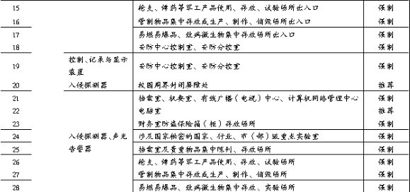 表 1 高校重要部位安全技術防范設施基本配置要求